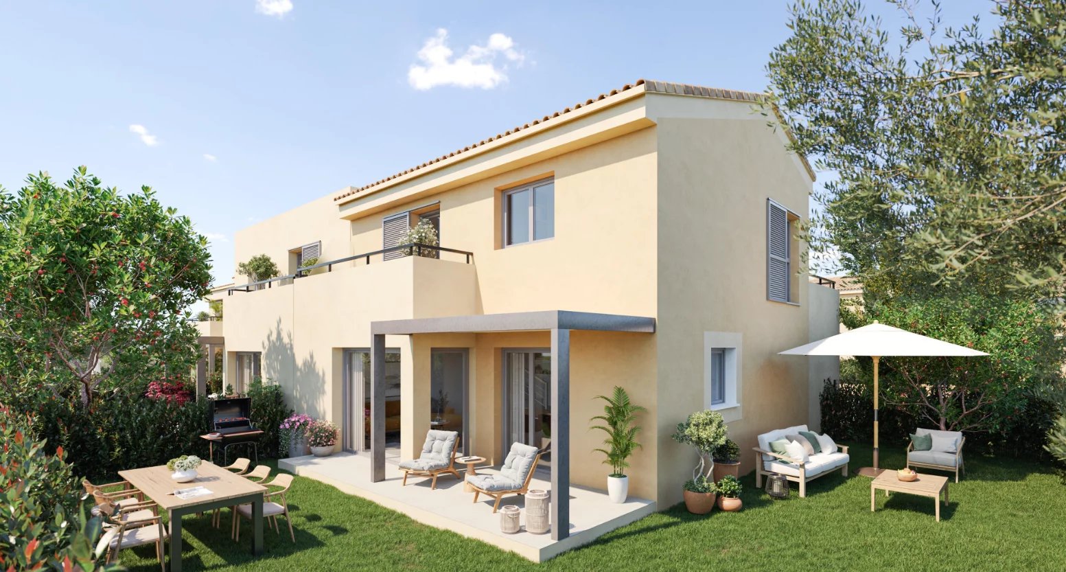 Chaque villa dispose de son jardin privatif et de sa terrasse, jusqu’à 150 m², créant un cocon familial accueillant où l’on se retrouve en toute simplicité.